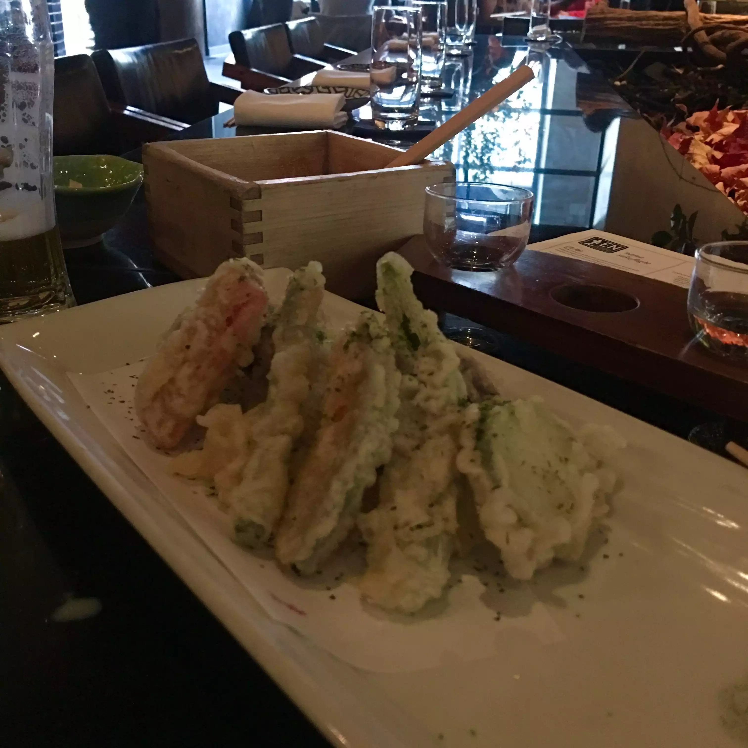 EN Japanese Brasserie is quite different from any restaurant we have encountered Upstate. Great sake selection and priced accordingly. Appetizers and entrees were difficult to choose... we went with another couple who have been there many times. This made choices easier. Portions were not large, but shareable and quite tasty.