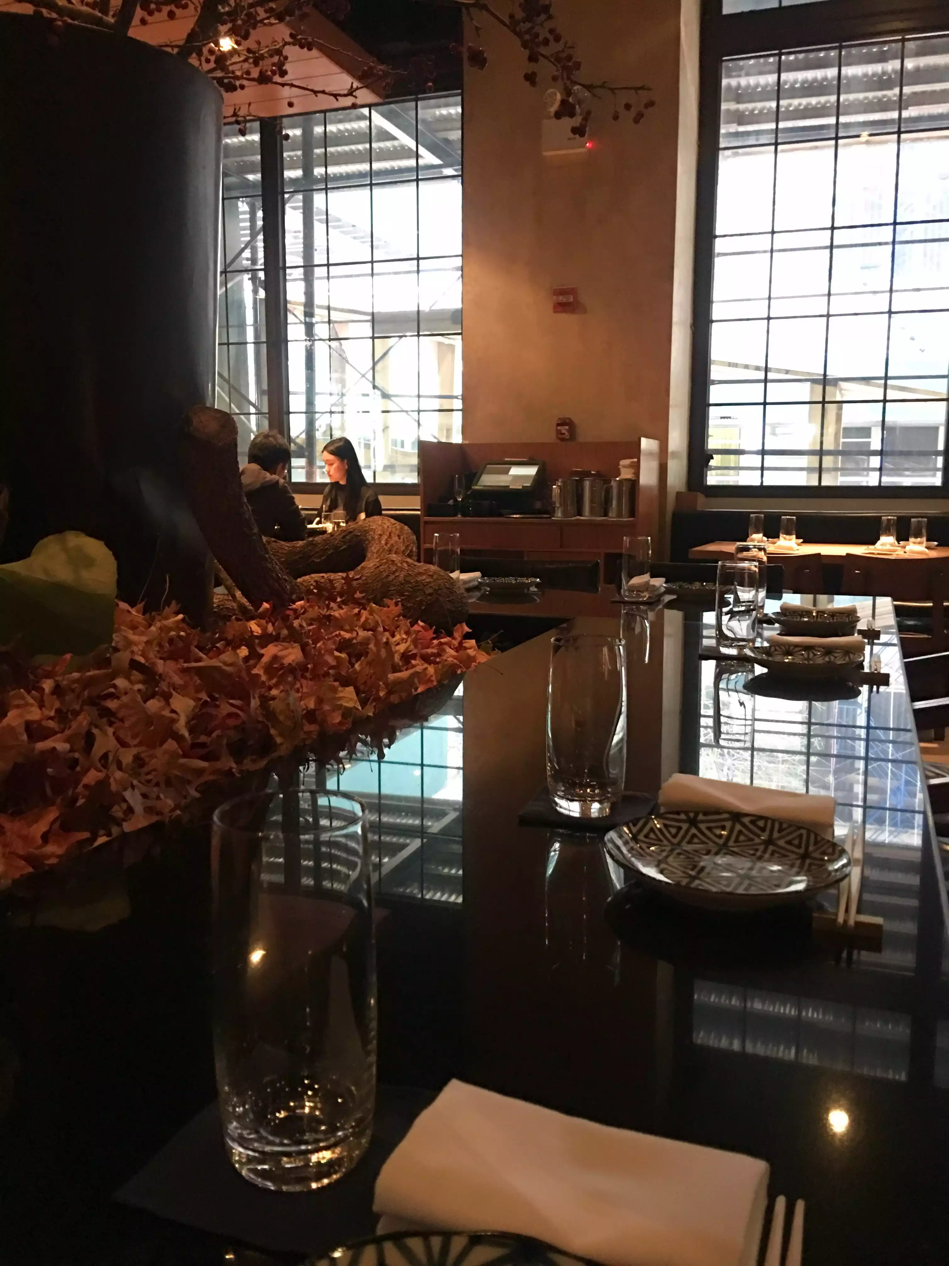 Several years ago, this restaurant was superb . . . the ambiance, a fresh altermative in Tribeca, with its low slung tables and banquettes and loungey dining chairs and Japanese architectural elements. Sadly, on our recent visit to NYC, we were disappointed with a restaurant that needs to be refreshed, from leather dining chairs falling apart, to ripped paper motifs above the windows, overly steaming radiators, all missing the elegance of our New Year's Eve dinner there in 2014. The food is still good and service was swift, attentive, and unpretentious. We love their sushi rolls, which are a roll beyond the normal. The pre-fix options with sake pairings (albeitn somewhat pricey) are a certain way to ensure a full-rounded taste experience. One of my favorite (reasonably priced) dishes is the chilled soba noodles with duck breast and scallions. I wish the owners would polish the place up a bit, as the food and service are always good, and I'm giving it an average rating for this reason.