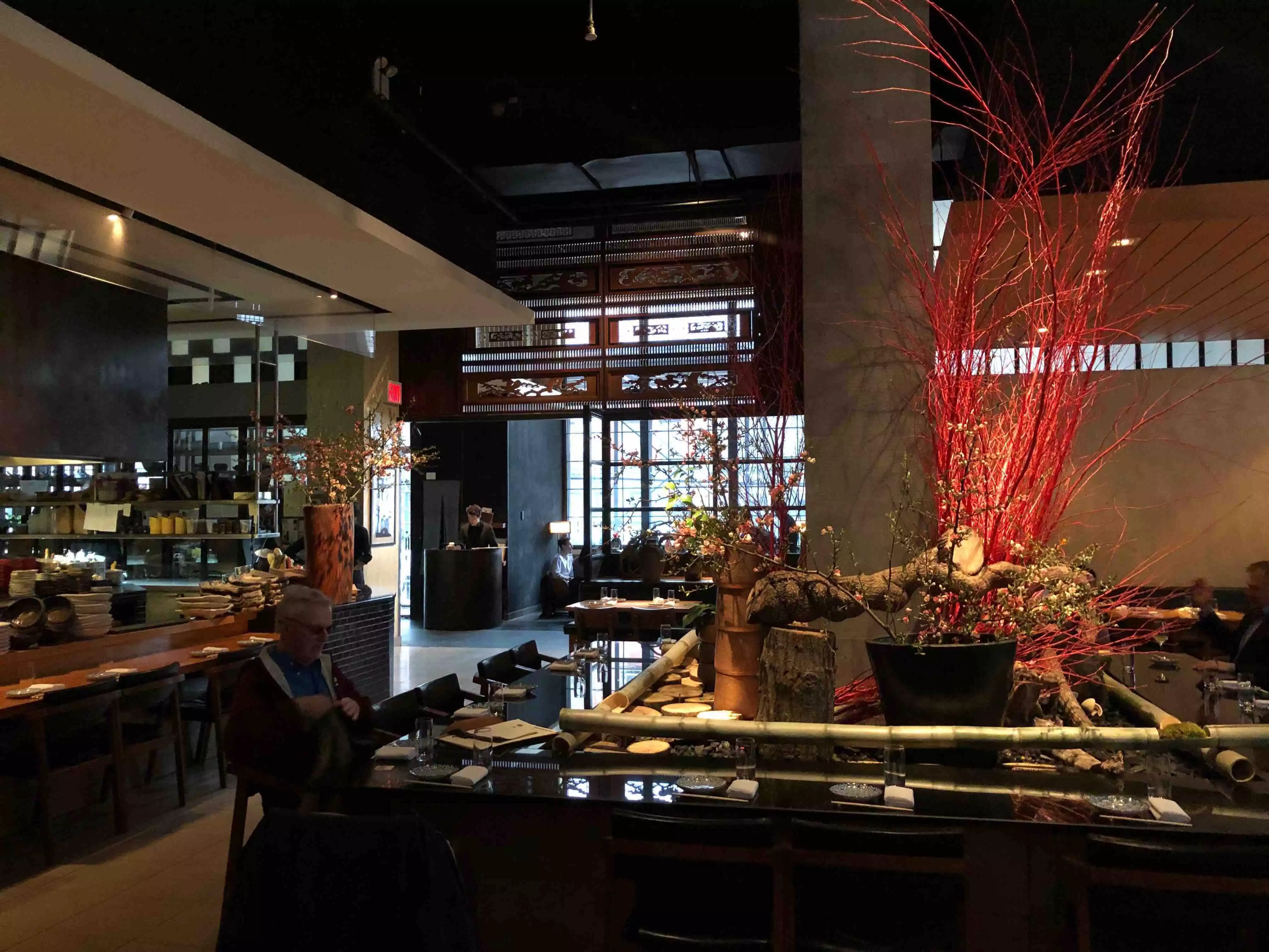 High ceiling dining space with tables distant to each other that it is a very good environment for business chats. Sushi Bar dining table setting apart from many tables. Interesting tasting menu (3 level selection)with matching Saka is served. Extremely reasonable price as what it is served. Soko kaza was chosen by my host but Aozora was much appealing to me; sashimi was on average but the mushroom appetizer was excellent. Waiters behavior were exceptionally good as In New York the typical service behavior is the worst in the world standard, sorry to say that as my 30+ year New York visit experience tells. Book days in advance.