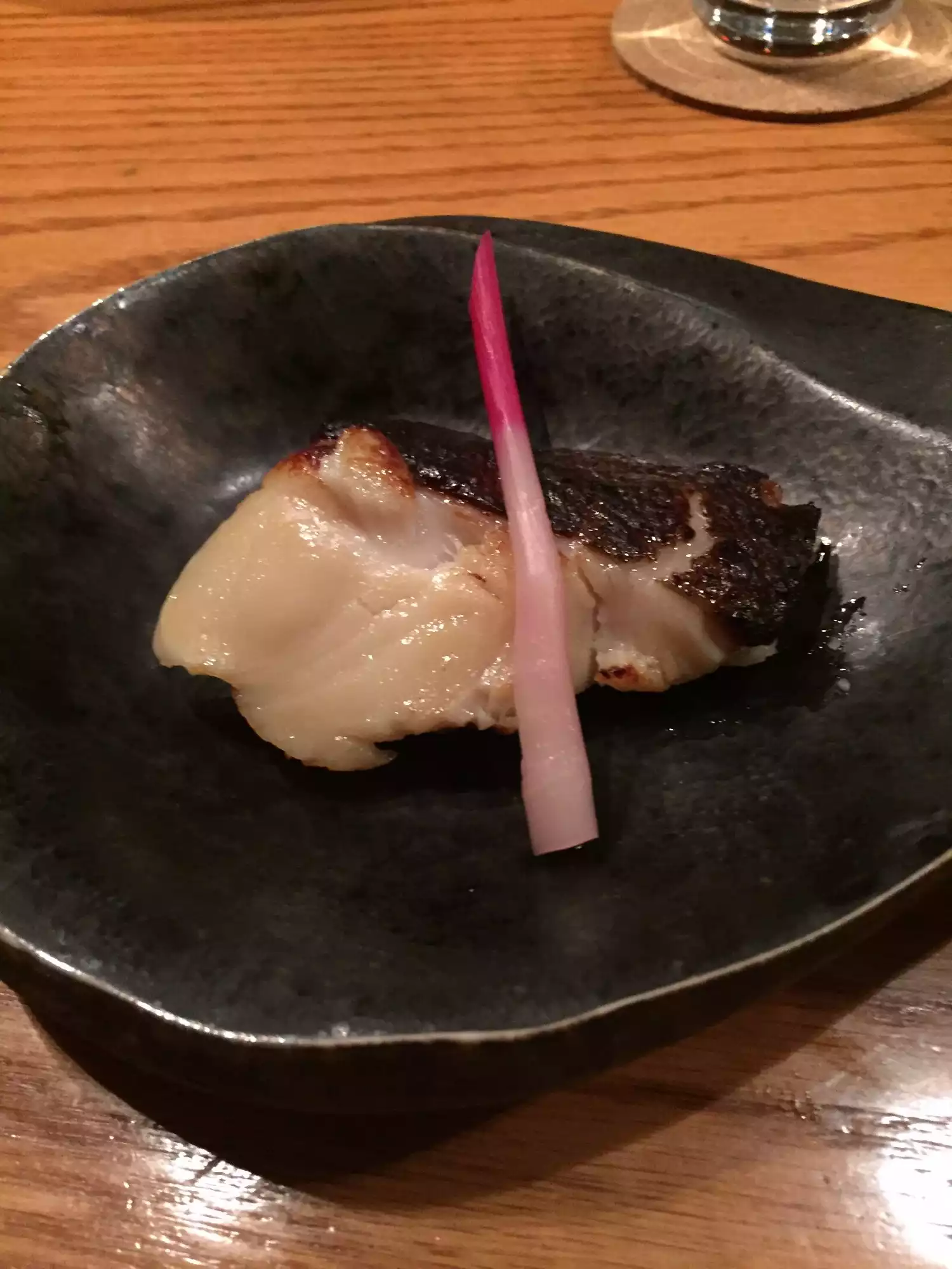 Aesthetically, the restaurant was attractive done is black with light frame décor and subdued lighting to give a modern and relaxing appearance. The menu offered various Japanese style dishes, but with various twists to make them unique to this restaurant. Because the dishes were non-traditional, I could not easily discern what I was going to get, so felt a bit frustrated as to what to order. I decided upon a "salmon collar" for dinner. Seemed safe enough. Indeed, I did get salmon, but on a heavy bone which constituted half of the serving. The salmon was good - yes, it tasted like salmon. But, with the generous portion of bone, there was not much actual fish to eat. I guess if you know this beforehand, and you are hungry, you can order various side dishes. Also, the service was slow. Overall, I felt a bit let down.