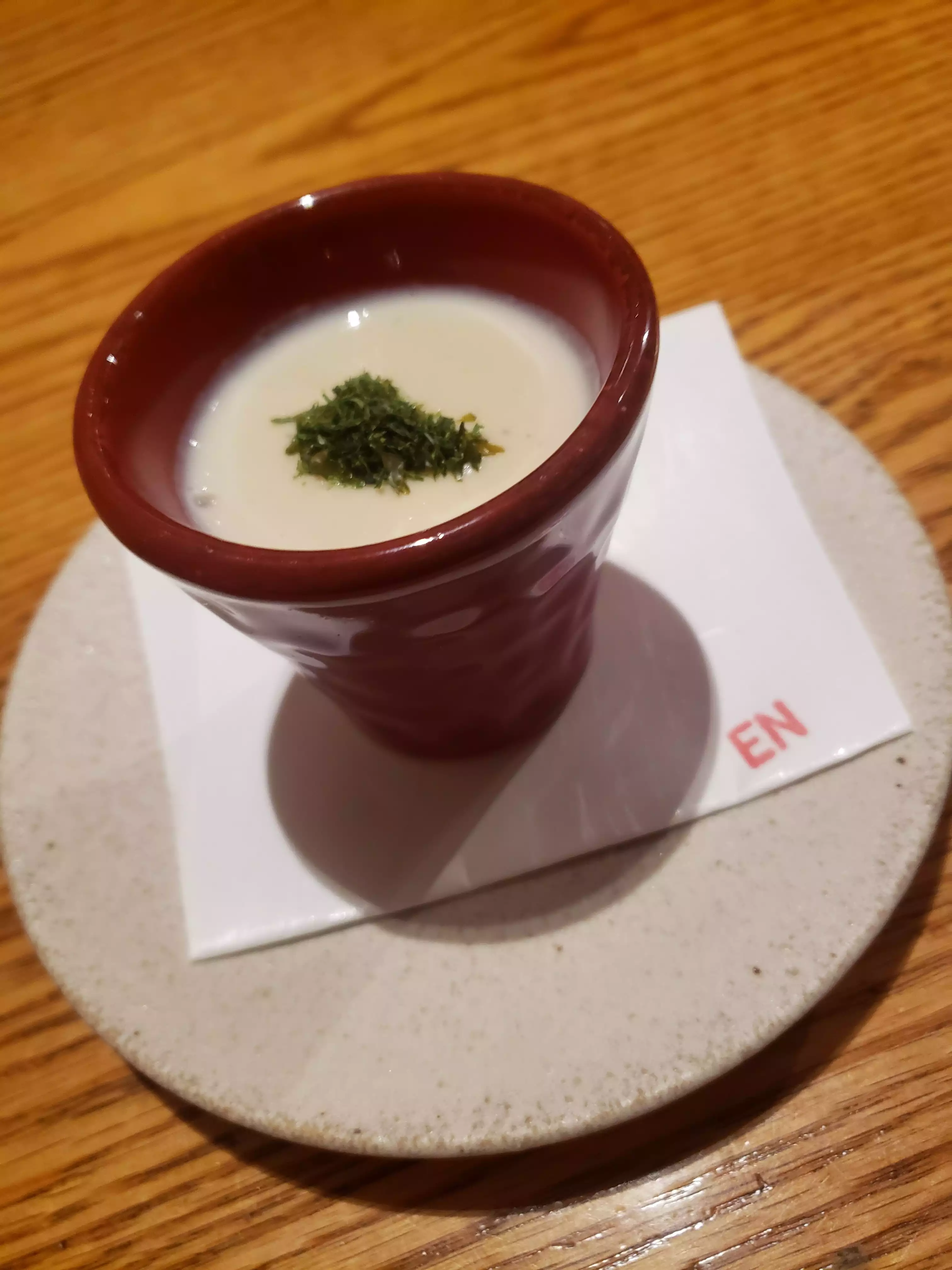 Visited with son and daughter as a group of 4 and thoroughly enjoyed the evening at En-high quality Japanese restaurant. Make sure that you book. Tried a mix of set menus for each with sake flights and enjoyed well paced dinner with plenty to eat-drink of fresh and good quality Japanese food and drink. En threw i n a couple of complimentary dishes including truffle based dish. Pricey-$150 per head with drinks- but not left feeling diddled.