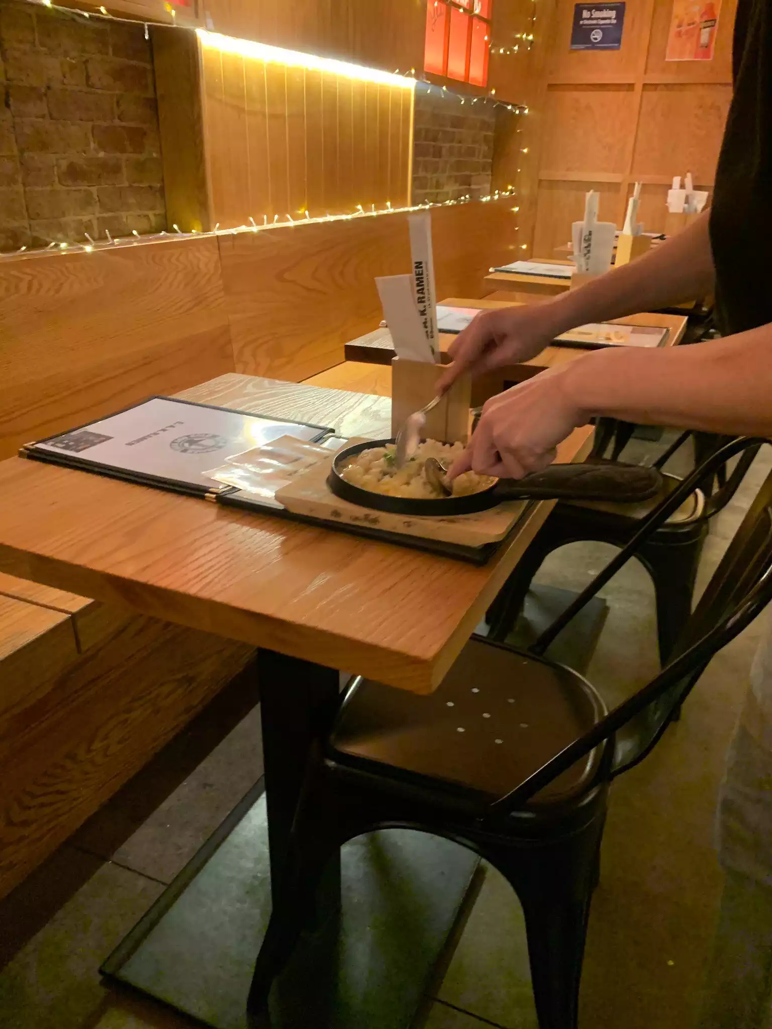 We were referred to this establishment for its tasty Ramen at reasonable prices. Our only criticism is that the Ramen is pork or chicken-based while my daughter is a big fan of beef. Because of that, we didn’t actually try the Ramen, the reason why we went how ever were extremely pleased with our choices. We started with the house made gyoza’s covered with a sheet or rice paper that was eaten right along with the dumpling. Absolutely outstanding! My daughter had the fried rice which was fried and prepared tableside on a hot skillet. Not an intricate dish but the flavors were unique and well enjoyed. My daughter declared it was simply the best fried rice she never had. I had the barbecue beef rice bowl which also was extremely satisfying with tender special-sauced barbecued beef over rice and veggies—delicious and plentiful. The bill was modest, the restaurant clean and tidy, and the staff were extremely friendly and attentive.