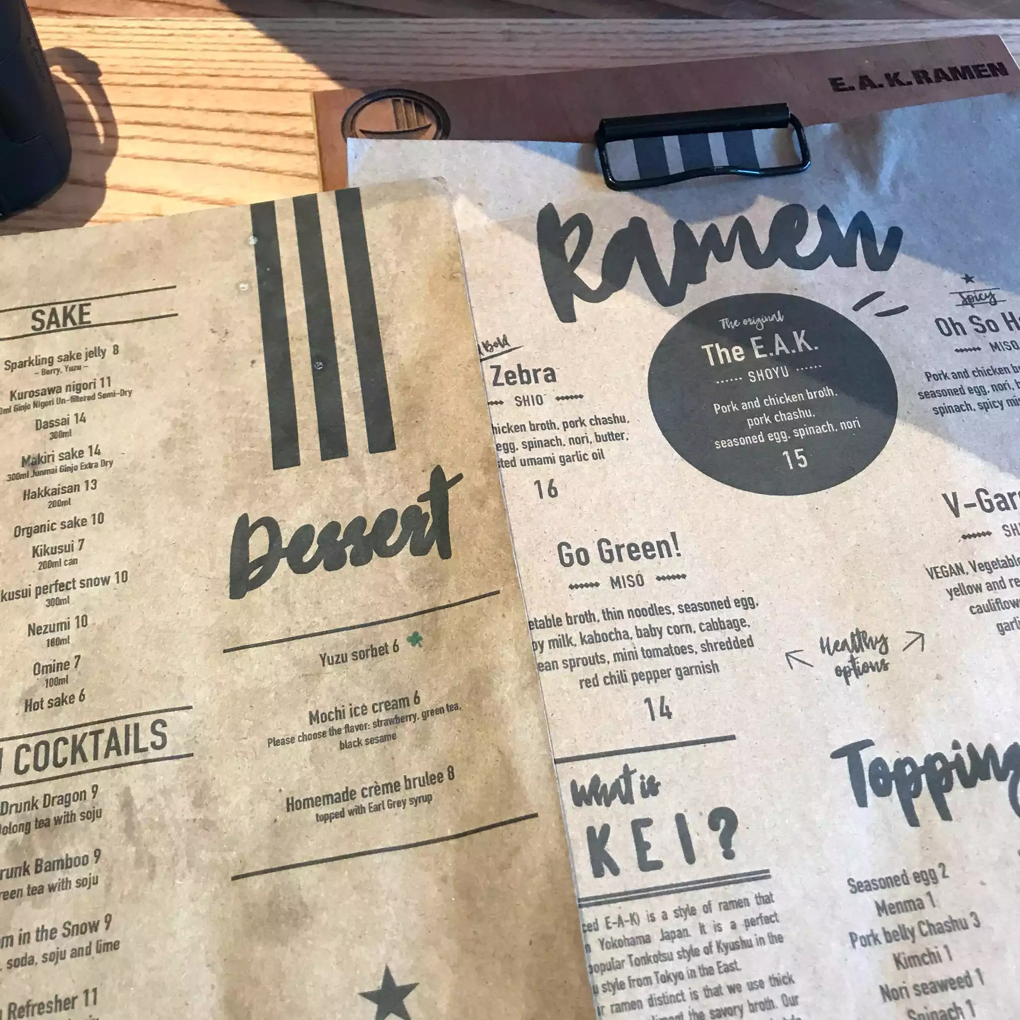 Delicious ramen. Five basic ramens to which you add more contents. Their EAK basic ramen plus spicy leek, onions, garlic oil and their clever “spice bomb” (3 different serious chili’s/peppers created a wonderful dish. Noodles al dente. Other items on the menu but the ramen is the showpiece.