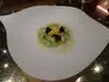 Watching this type of cooking on TV or hearing about 20 small dining plates where form rules over substance, I was apprehensive paying so much money for so little food BUT... it really was an experience. The 8 diners are seated with drinks before we enter the dining room, that was the only blip - why sit us in what was effectively, the hallway containing the hotel's restaurants? Once drinks were served, the party began with the olive crisp before we were guided to the dining room. It made sense to sit on high chairs to see the chefs in action but (another 'but'), it was a bar stool and something more elegant and comfortable would have been better. We had crab, foie gras, truffle, cava spheres, Iberico ham, beef cheeks etc etc. Apparently, one dish takes 7 hours to prepare and the beef was cooked for over 2 hours! Watching the 8 or so chefs working for us and the sommelier doing so well with the pairings, it was easy to see where the costs were. We were, after all, employing one chef each for over 2 hours! My favourite dish changed time after time, the creamy foie gras in a meringue sandwich was one highlight but the crab was so full of flavor, it had to be the winner; then again the sea urchin was fabulous... I was a little concerned to have a wine for each course but fortunately, this was not the case. Our cava lasted for the first 3 courses and other wines stretched across courses so we had enough without being so drunk to miss some of the evening. I might never get to the Fat Duck or El Bulli however I have managed E and very happy to have done it. Excellent food, great flavours and yes, I saw art in action.