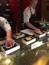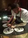 In little over 2&1/2 hours, you are served 20 dishes which are assembled in front of you. Innovative presentation and great taste along with unobtrusive service make this truly unforgettable dining experience. Book early as this restaurant within Jaleo seats only 8.
