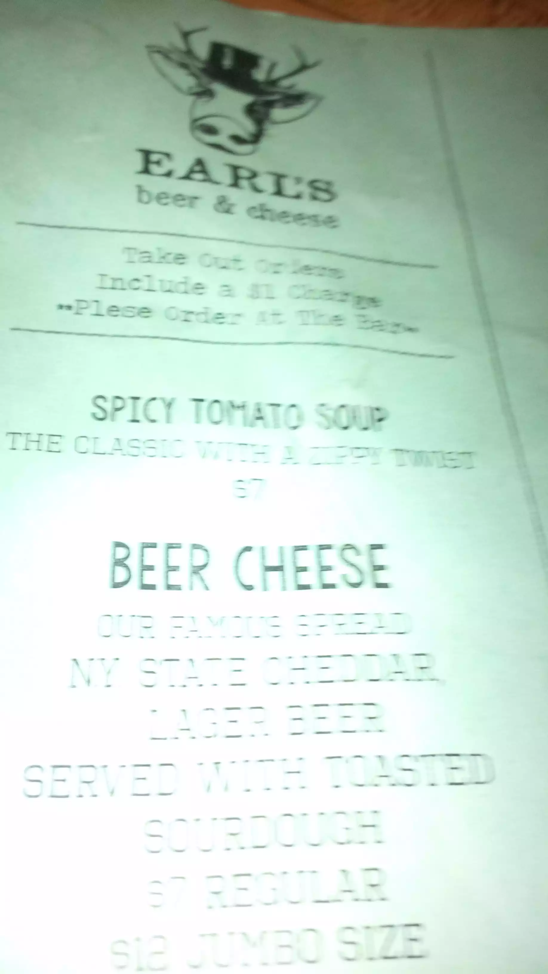 Alright so for a few years I’ve been meaning to come to Earl’s after a few friends recommended it. Today I finally happened to be in the area and stopped in. Maybe I came in with too high of expectations, maybe it was just an off day, but my experience was nothing more than mediocre. The beers on tap were fine, no complaints there, but the food was whatever and kind of meh. Started out with the beer cheese, also had the Reuben. Like I said the food was kind of let down, I left feeling disappointed. Honestly I doubt I’ll be back but hopefully you have a better experience than me.