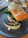 We enjoyed our lunch outside on the patio. I thought the swordfish tacos were very good. Also, others in my group had the Salmon bowl and Seasonal Chicken Kale salad, both indicating they were delicious. Ignoring the service, this was an excellent meal. However, the service was not good, with lunch taking almost two hours to complete without any dessert. Our waiter disappeared after bringing us our drinks, and the manager ultimately came over and took our order. Three out of four of us eventually received our entrees, and the last one came out 10-15 minutes later. When we requested drink refills, it would take 10-20 minutes. And, we had to ask 3 different people to bring some sauce for a sandwich. If they can button down the service, this would be an awesome place to eat since it's in a good location and lots of outdoor and open air seating.