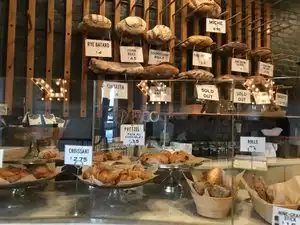 Very tasty smoked turkey sandwich on wonderful bread for lunch. The "half" at $8 was plenty enough for me. Delicious coffee and I wish I had room for some of the lovely-looking in-house pastries. Good service.