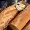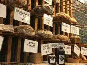 Service was great. Hot chocolate was not good, but the baguette and butter were delicious. They had all the tables inside reserved, and they gave us no choice but to get a table under a tent outside. It was raining but we still managed to get a place where we could stay dry. When we left, the tables inside were still reserved, and empty. That wasn't nice!!! We bought 2 sour dough loaves which were really good.