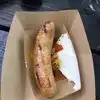 Dropped by two days in a row with business colleagues for lunch. Love the outdoor seating, but the Indoor seating is a little dank. Had different types of sausage and sides on each day. Sides are refreshing and help keep it light. Definitely get the pretzel bun as it is not only tasty but can handle the juice from the sausage and not fall apart (unlike the weak fluffy buns at Bangers).