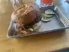Large work group dropped in for a quick bite. Bunch of apps and sandwiches. The tray with pretzel and pimento cheese was excellent but the homemade jerky was a little to smoky and very tough. The chicken thighs were really good and the rest of the group all enjoyed the various sausages from the menu