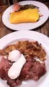 Went to Eat for breakfast. Shreds were delicious! Breakfast was served quickly hot and delicious. Atmosphere casual, a little cramped but with really good food and at a decent price, it's well worth it.