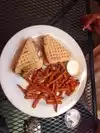 The name is simple and to the point, just like the experience. There’s decent seating on the patio, and it’s fully covered — great for enjoying a meal outdoors without worrying about the weather. I decided to try the Parmesan Crusted Grilled Cheese, and I was pleasantly surprised by how large the sandwich was. Paired with a generous portion of onion rings, it turned out to be a very filling lunch. The grilled cheese was delicious — not overloaded with cheese, and the bread had just the right amount of crust and crunch. The onion rings were thick, flavorful, and nicely cooked. I’d definitely visit again.