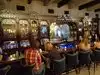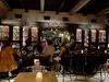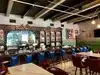 Energetic bar scene with a beautiful historic bar brought in from nyc. Good service great drinks and food at the bar