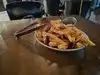 Good way to justfy those extra burpees. Fried goat cheese, spare ribs, frareek with calamari (sp). Lamb flatebread pizza, vegetarian pizza, were all very good. Great server with a sense of humor. Patio dining is perfect, but smallish. Decor inside was nice, and not at wait at 6:45.