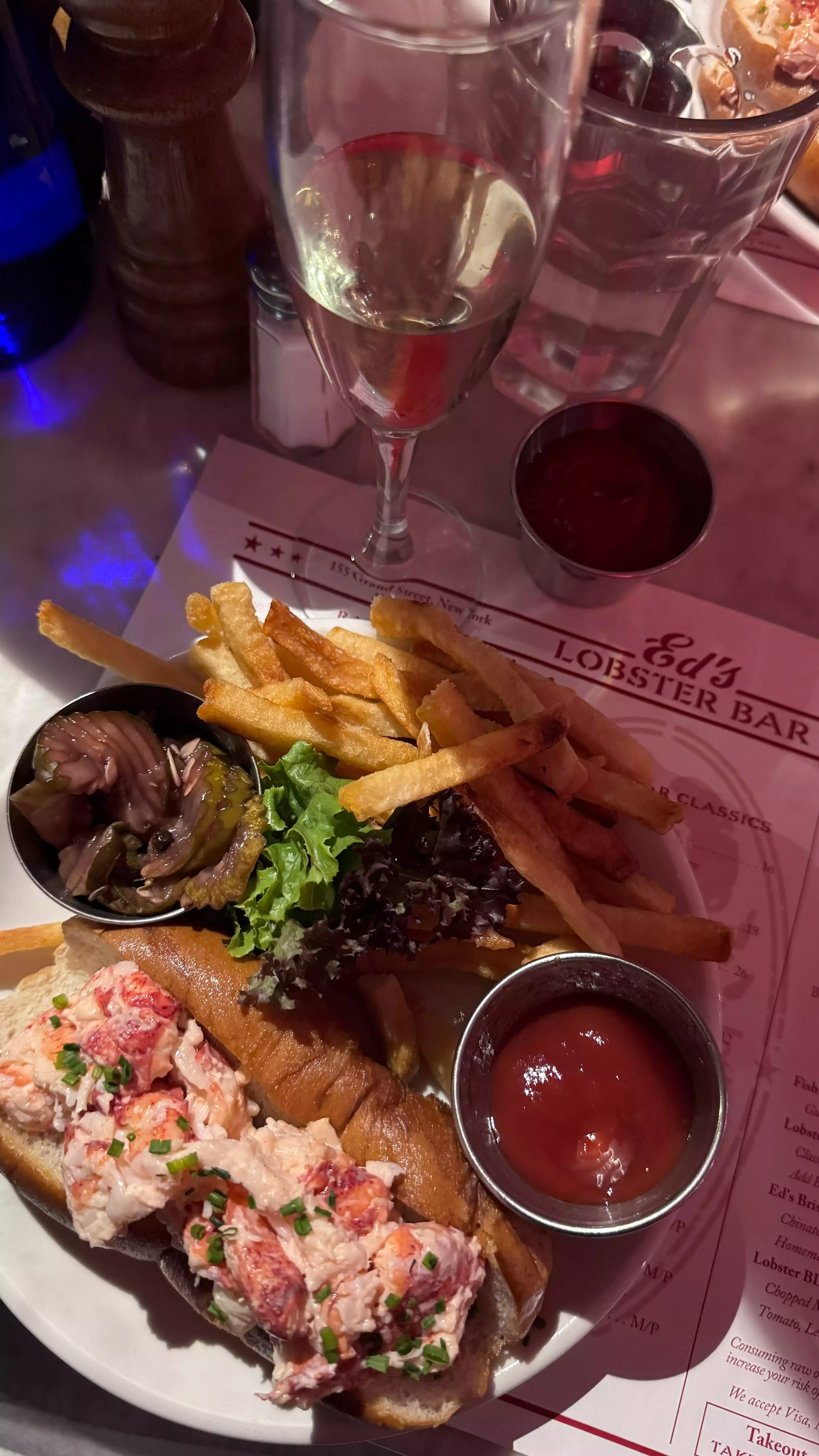 I love Ed's Lobster Bar. I stay in Soho to be close to my restaurants and bars. I come to NYC once a year to eat, drink and shop. My first stop after I drop my bag at the hotel is to walk real fast to Ed's on Lafayette Street. I already know what I am going to get every time my only other decision is whether to get fries or a salad with the lobster roll. I was there for five days and I went there twice. I mainly went to try other places too, so i tried the place at the pier, well it was small and the bread was like a piece of texas toast it was wrapped in and I was still hungry. So I left there and had to get an order of french fries at Greenwich Tavern up the street, so I guest I paid 25.00 for the view of the statue of liberty. Don't even go to Chelsea market that lobster place is a rip off too. So no more trying these other places, I am sticking with the best and that is Ed's!! I can't wait to go back. Liz