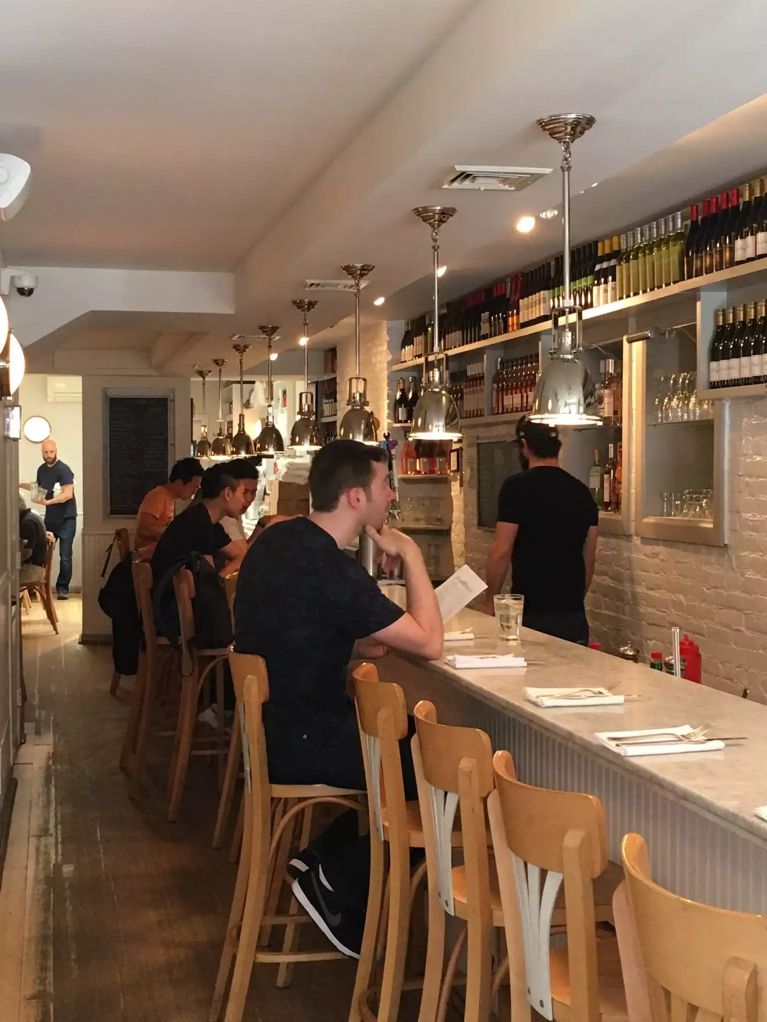 Long and narrow room with plenty of seating at the bar, maybe 10 small tables towards the back. The staff were friendly and casual. The available wine choices were good. The lobster roll was very good and on the pricey side. Great for lunch.