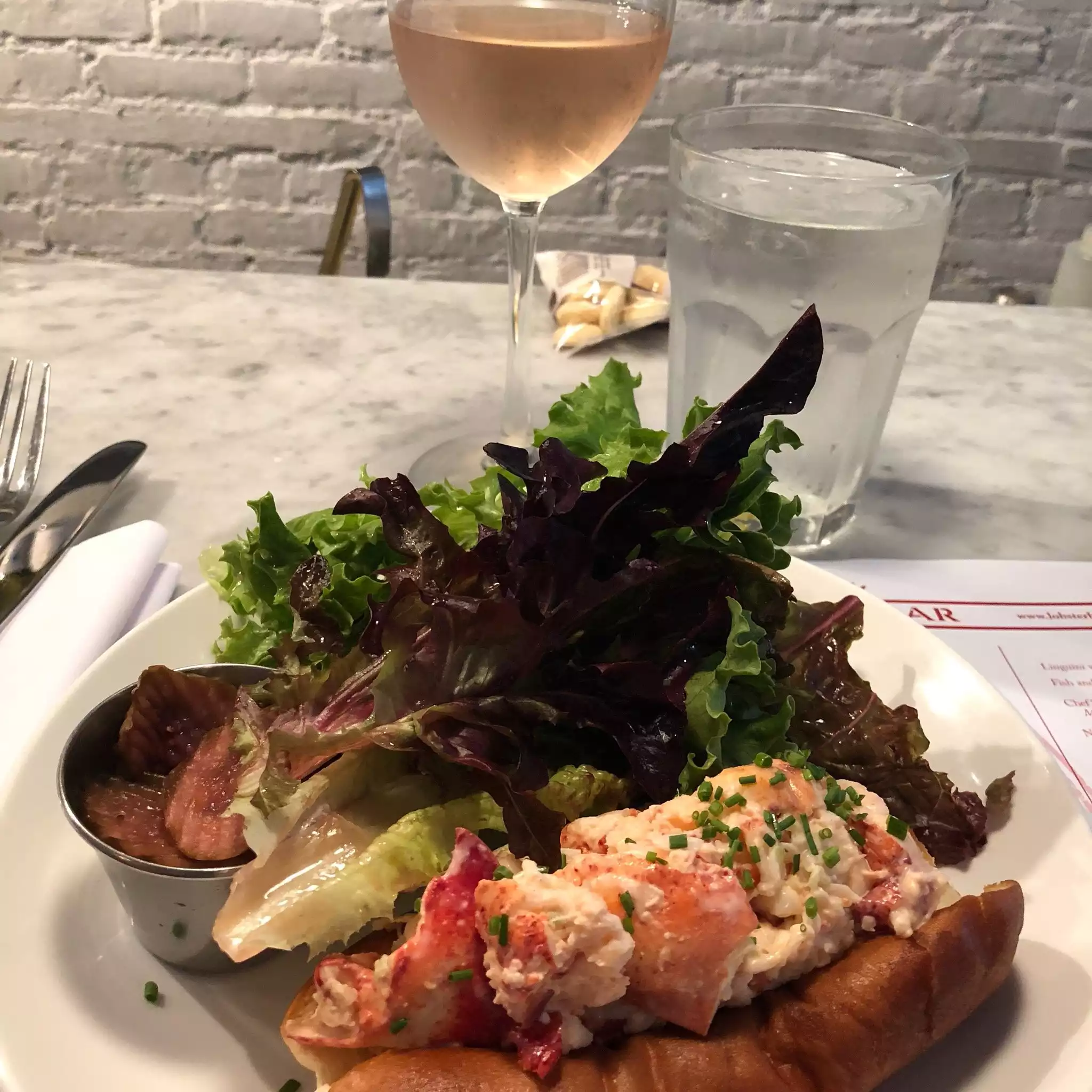 This was the perfect spot for a casual lunch with a bottle of wine. Several different dishes to choose from featuring different combinations of lobster. Service was very friendly and attentive. Solid wine list from which to choose. Definitely will return.