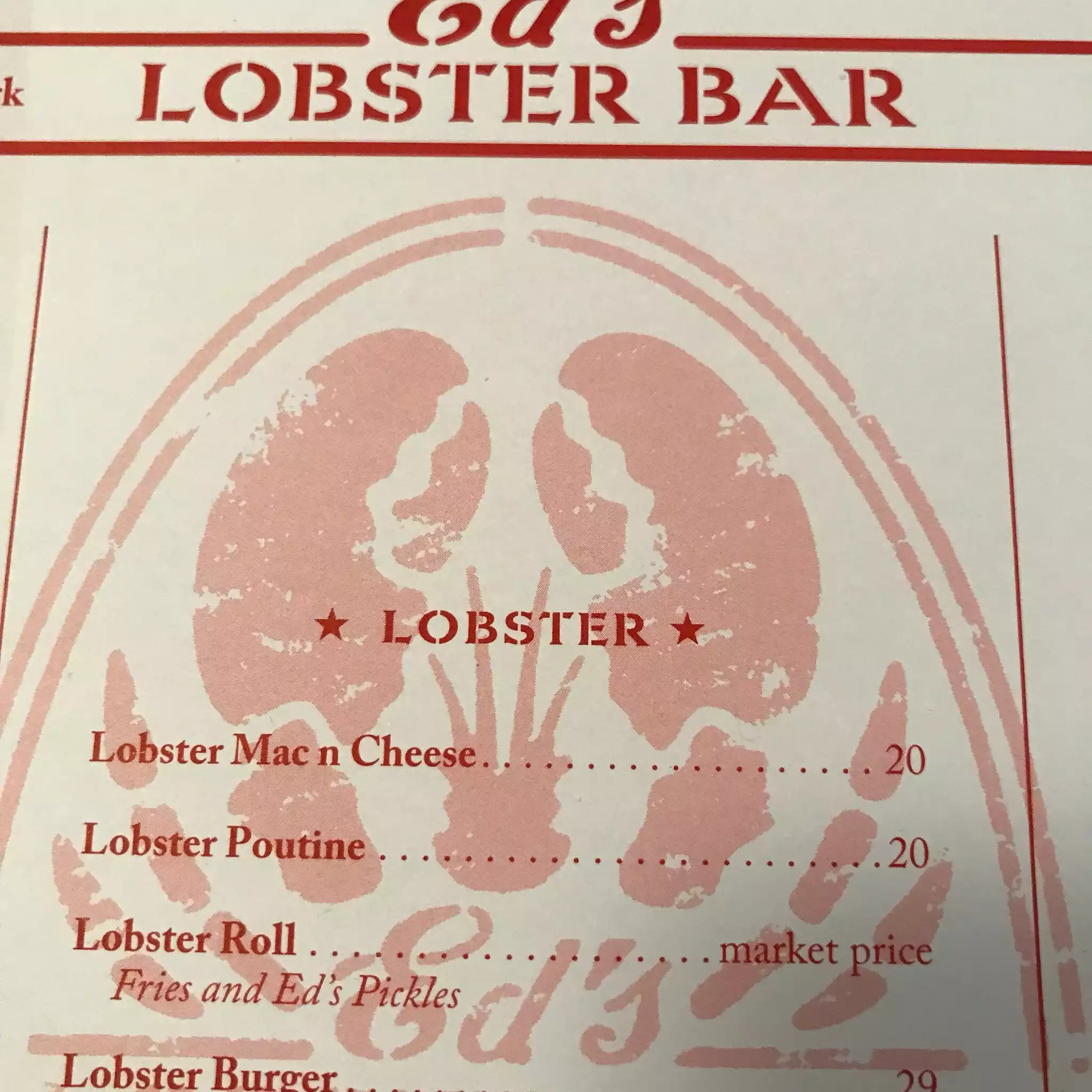 I've been coming to Ed's since they opened and it's with a heavy heart that I can no longer recommend it. Between covid and inflation, I expect a drop in quality but Ed's has become much much worse. The Lobster is tasteless and the Mac and cheese is Kraft's supermarket quality. The portions too small but the price is gone up far too much. AVOID.