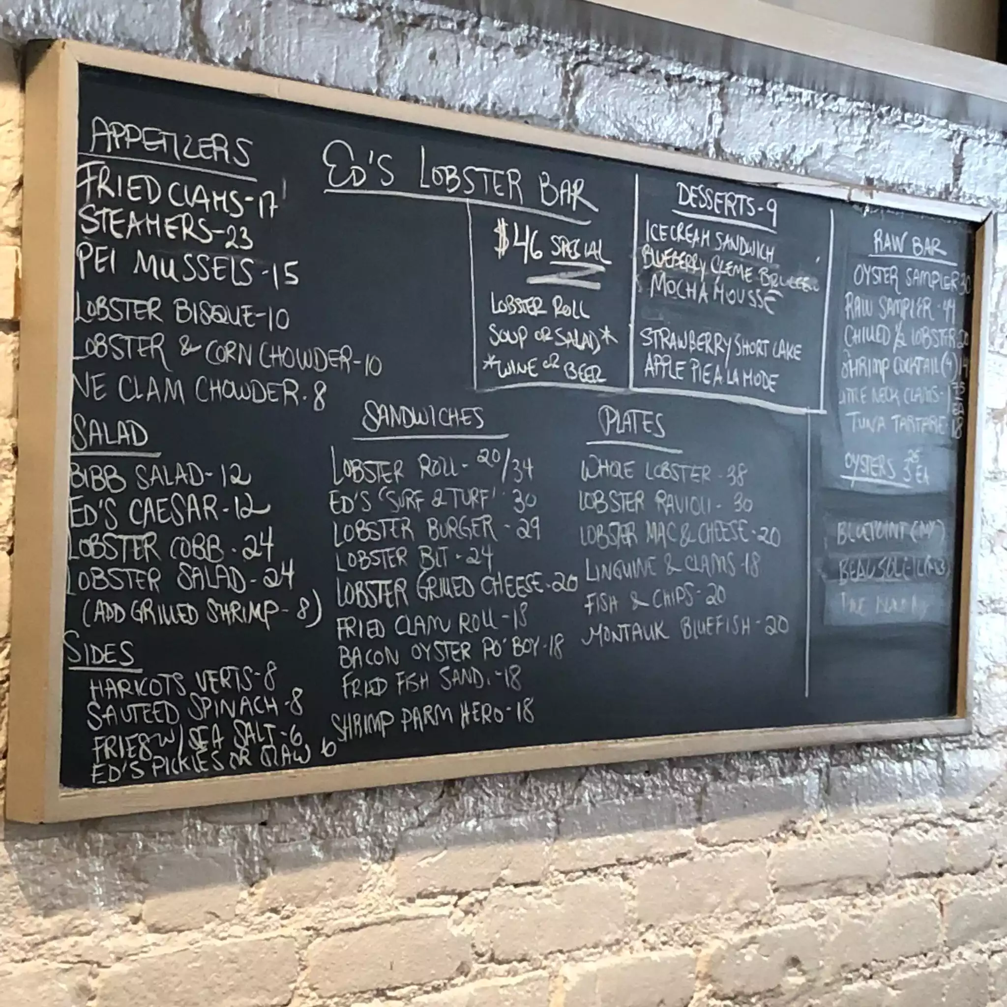 How very sad that a restaurant I used to visit on a regular basis has sunk so low. First, a few positives. The staff behind the counter were warm and welcoming. The cocktails were good and reasonably priced, by NYC standards. But the food. And the cost. Someone needs to tell poor Ed that decreasing the quantity of the portions while raising the prices is a sure path to restaurant oblivion. The $10 New England Clam Chowder was falsely titled. Its' real title: New England Potato Chowder. If there was a clam in my chowder it must have been buried under the mass of potatoes in the soup. As for the signature $36 lobster Roll really? The roll, while quite tasty, contained no more than four ounces of lobster meat. As a joke I imagine they actually had a half lobster roll for $20. This must be a one bite wonder. C'mon Ed cut the prices and increase the portions size before you end up playing video games in the kitchen.