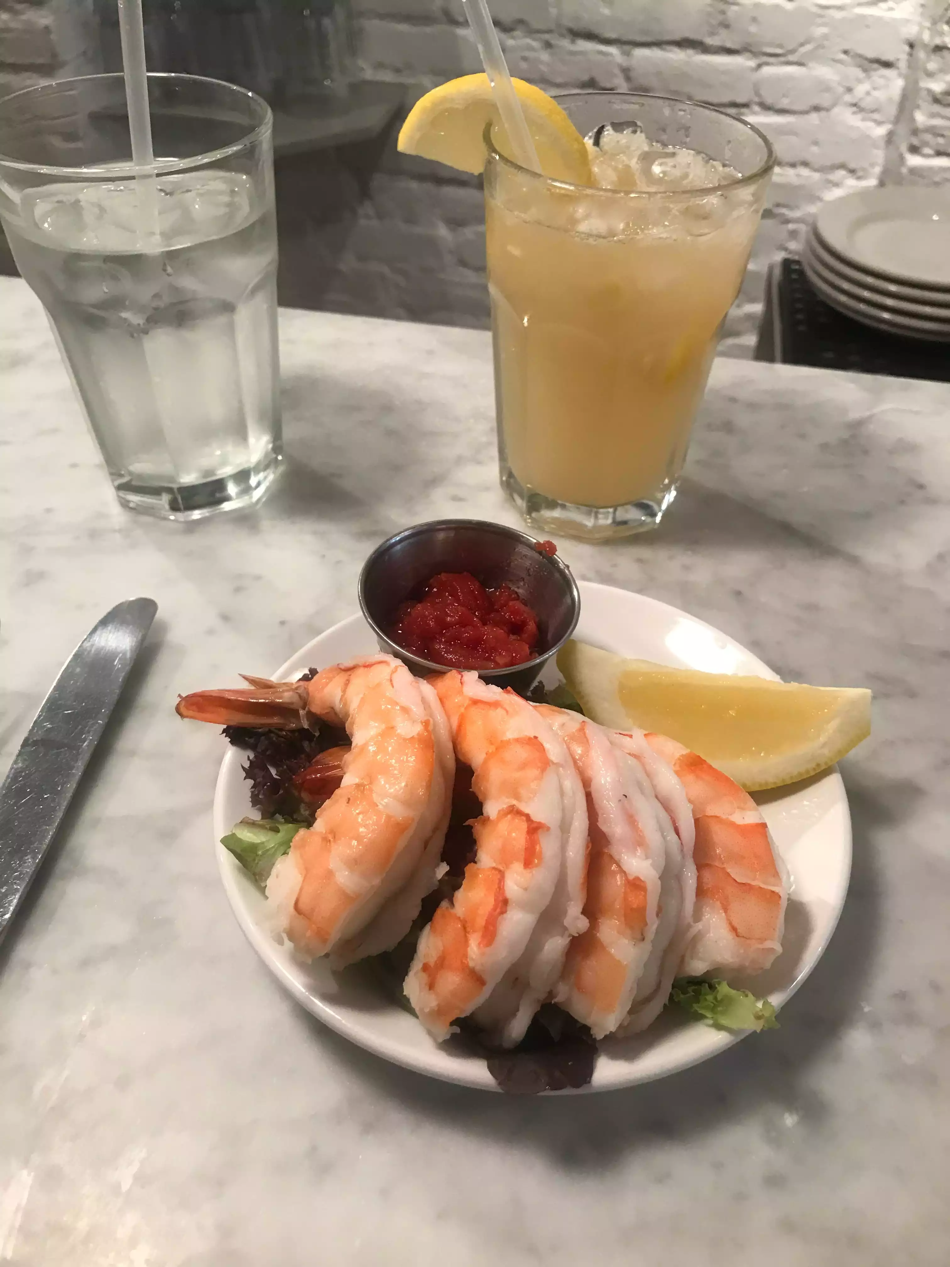 Entering at 1PM it was quite empty. However, I did secure a reservation beforehand. Good thing too bc within minutes, it became full. Seating at the bar is a bit uncomfortable - my knees kept hitting the bar. Lemonade was made to order and it was refreshing. They seem to cater to wine and mixed drinks. Shrimp cocktail was HUGE! And their own cocktail sauce seemed fresher than the jar. Lobster and Mac and cheese was a bit disappointing. Pasta in sauce with a piece of lobster meat topped off. One piece had a lobster shell! A bit pricey for me: cost $49 but it is Manhattan and seafood. Give it a try.