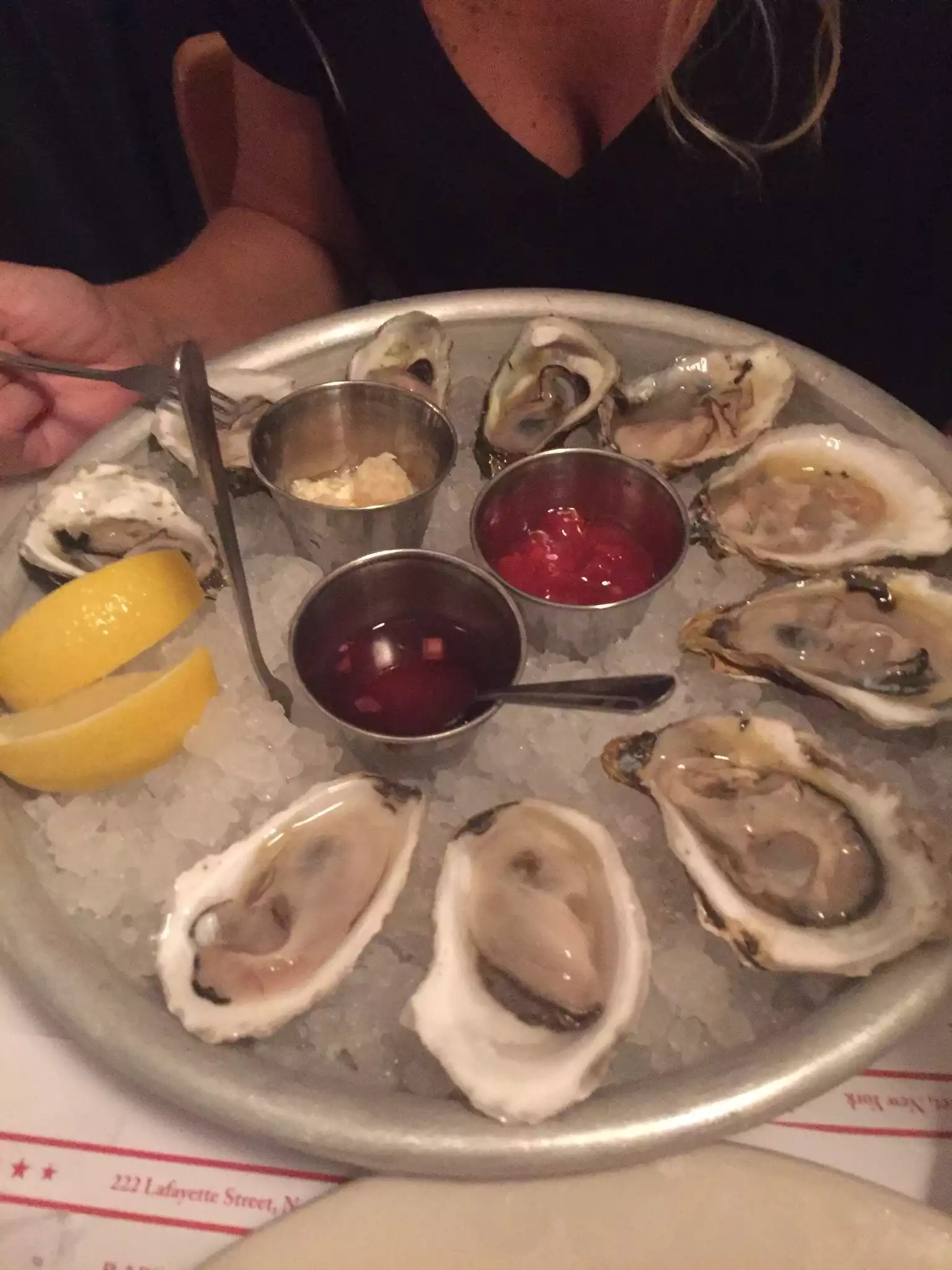 There seems to be some confusion of where this is, with one listing showing 222 Lafayette and another 155 Grand. Both look identical in logo from photos, so maybe it was a change in location? We went to 155 grand and enjoyed oysters and champagne in a chilled out environment with exceptionally helpful and friendly service assistants to help us make the most of our time at Ed’s. Would definitely recommend for anyone looking for a friendly vibe and delicious food.