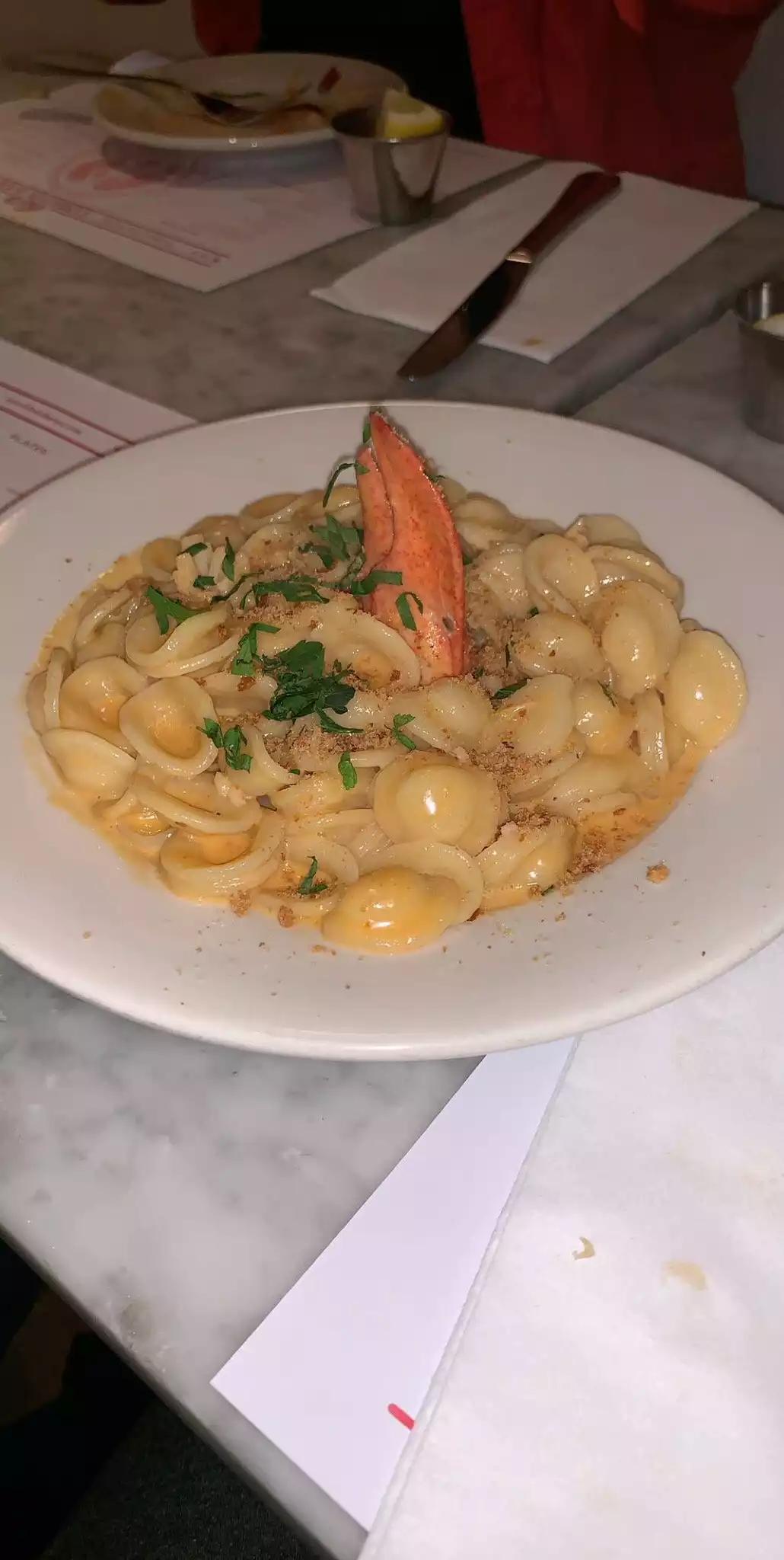 My uncles raved about this place during my whole stay so one night we finally went here! Man it was worth the wait!! We got here late (10) and we didn't have to wait long. My uncle's knew all the workers and all the workers were very friendly. We ordered our food and they made sure our wine continued to be full. When whatever we ordered was out of stock they were very apologetic and nice. I ordered the lobster Mac and cheese, even tho I don't like lobster, and it was AMAZING. I definitely would try everything if you can! It is all very delicious! The chocolate lobsters at the end are yum too. I was very impressed with everything. Definitely worth the wait and the price.