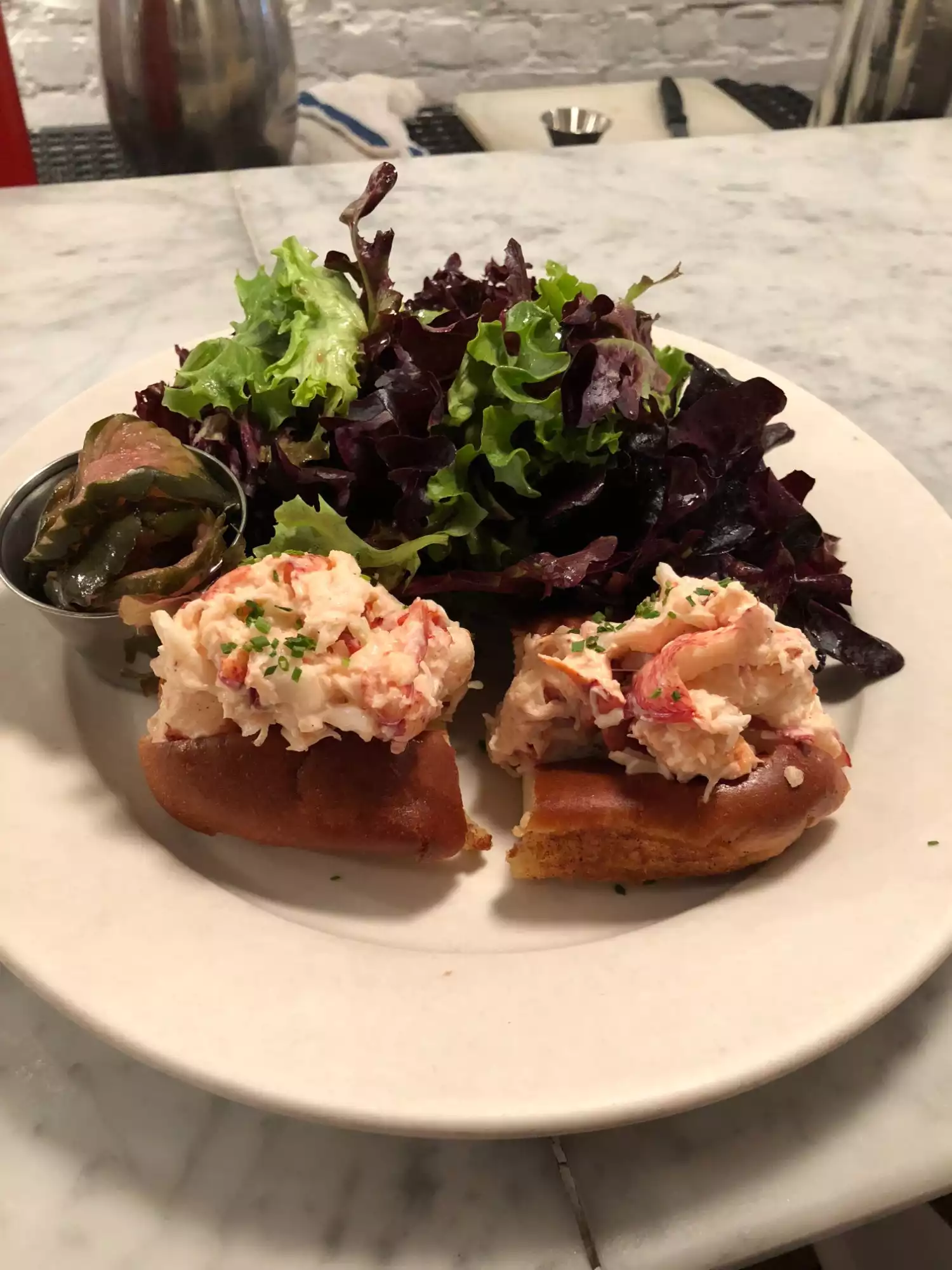I ordered lobster roll ( signature dish!) $20 dlls with a table spoon of lobster soo rediculuss small in the over buttered bun. Side dish a with salad season with so much vinagre that has unpleasant to eat, the waiter was rude and unpleasant Will NEVER go back