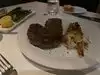 My husband had shrimp cocktail ($22); I had lobster bisque ($17). We each had 8 oz filet which was perfectly done and au gratin potatoes. The food was terrific as was the presentation. Very fine service as well.
