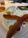 Hats off to Chef Roy who made me this amazing and delicious gluten free crab cake. The food and service (Connor) were top notch. I love this place, it is our favorite restaurant. Thank you
