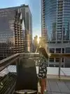 The sunset view is pretty amazing. There were about a dozen people up taking pictures as the sunset between the buildings.