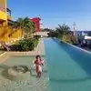 This is the pool deck at the Marriott. It's a lovely pool with the bar at one end. There's lot of seating on two different levels. There are several cabanas that can be reserved. Service is great. My only complaint is that the music is far too loud. If I want music pounding away I can go to a bar/disco. The pool should be a quiet place to relax and visit.