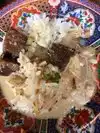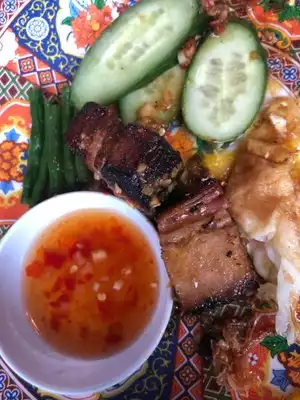 With no expectations, we ordered at a window. The lovely woman at said window told me the Bar B Q brisket bits with cauliflower and white curry was her favorite. Our table was behind us, under cover, on the sidewalk, and soon the plastic containers and plastic utensils were delivered. Pounding rain was heard above us, as I dished out the rice, curry, cauliflower and meat on to a plastic plate. One taste, and I was transported to food Heaven. This dish may be the highlight of my culinary journey of 2021. The heat of the curry was right on, and the brisket bits tasted incredible with the sauce. I ordered the same dish to go, it was so good. I can't imagine what magic Eem's kitchen produced before Covid. Eem may be the my best restaurant find in years. Don't miss this food. Eem is a foodie destination.