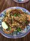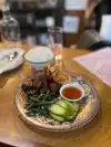 Excellent Thai BBQ restaurant. Sat outside in a booth. Family style dining. Had BBQ fried rice with mushrooms. Nice selection of craft cocktails, wine and cider.