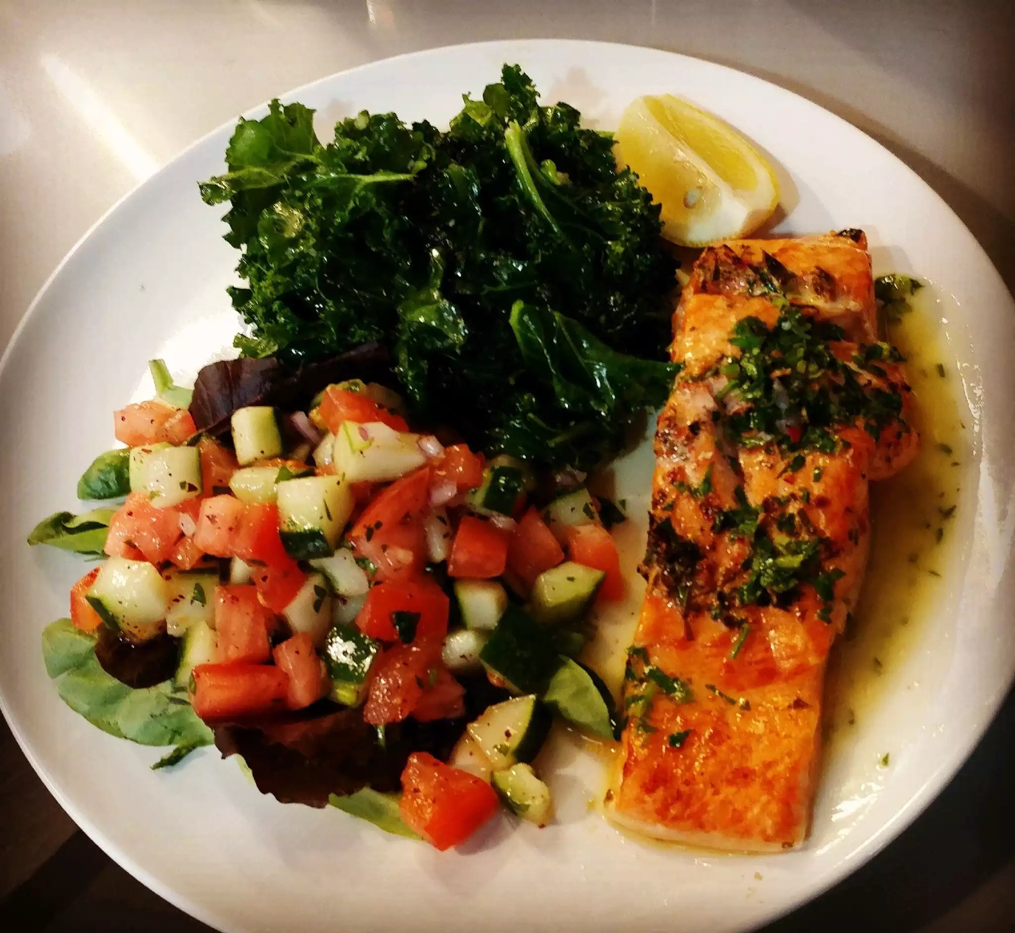 Very good service at this restaurant. My salmon was really good. The sweet potato was top-notch also.