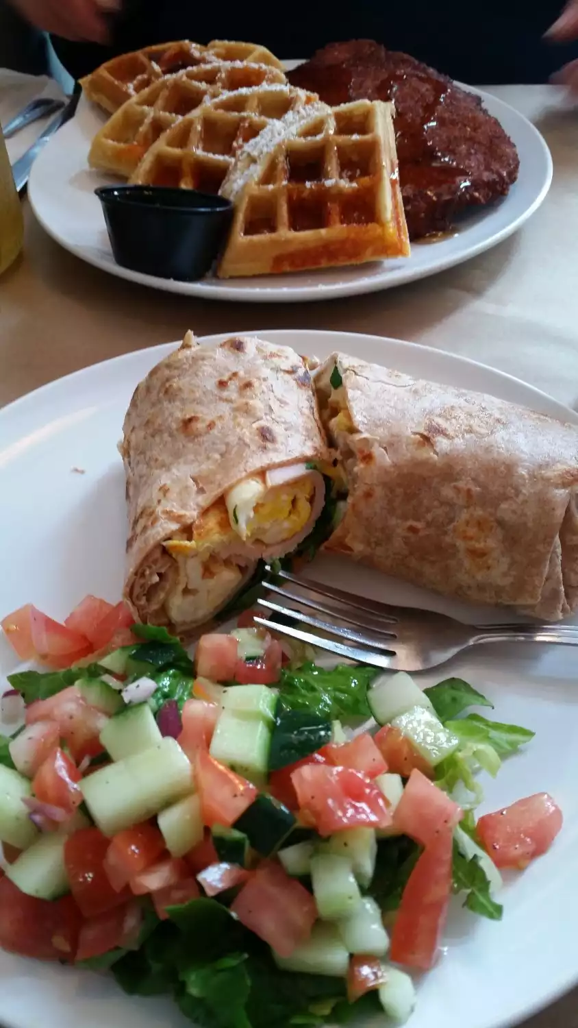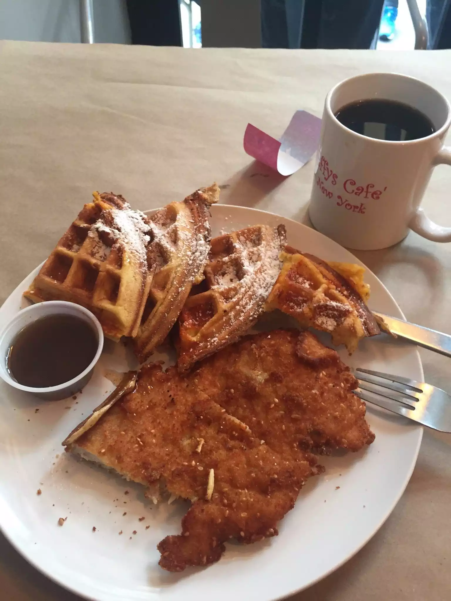 Chicken Schnitzel and Waffles. With Spicy syrup. Excellent meal and coffee was good too. Seating is a little tight.