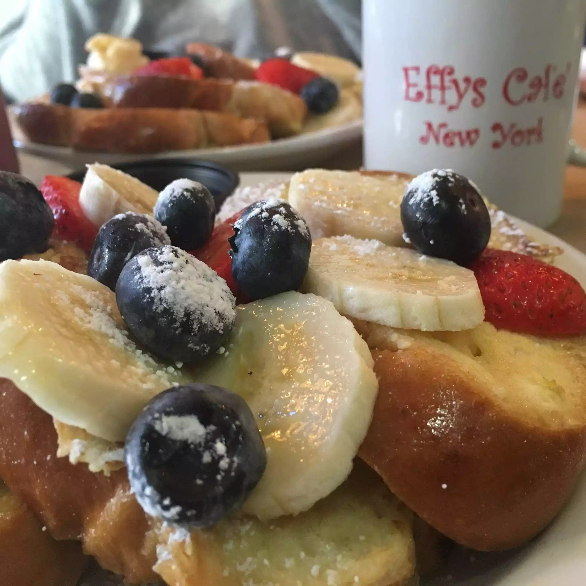 We had breakfast at Effy’s multiple times. The French toast is delicious, coffee is hot, service is fast. :)