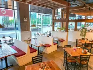 Arrived ten minutes after opening. Pleasant and attentive waiting staff. Spacious ambiance. Breakfast order was served Luke Warm which made it unpalatable. Waiteress was very apologetic and replacement was brought out swiftly but something to be noted.
