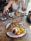 We came here for breakfast. I had the avacado on toast with tomatoes and 2 eggs. It also came with a bowl of fruit. My partner had eggs Benedict. Food was delicious. Good coffee too and very pleasant waitress called Lisa.