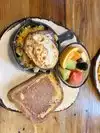 Great place for a family breakfast /lunch. Fresh and tasty. All freshly made, their orange strawberry juice was very good with the avocado toast. All or almost all is including egg and milk but vegetarians who're OK with that should have plenty of options.