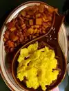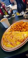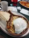 Portions are gigantic! My husband loves a restaurant in Louisville called skyline chili and we heard that eggworks does a cincy chili similar to skyline. So he just had to go to try it. He had the 5way chili and I had the 3 pigs omelette w sourdough toast. Normally I dont mention my toast, but this sourdough was delicious. All the food was very tasty. The habla diablo potatoes are super yummy and not spicy (I was worried about that with the name) it's more of a seasoning salt. Will definitely be back.