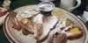 My wife and I dined here for lunch. We both had an Iced Tea and split everything. We shared the Chicken Apple Walnut Salad Sandwich with Potato Salad and the Crazy Chicken Omelet with Cottage Cheese and Cinnamon Raisin Toast. The service was lackluster, but the manager kept stopping by. We had to get our check from the cleaning person. I added many photos of our visit.