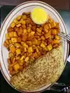 The omelets and scrambles were fantastic. They are big so you might need a to-go container. The Diablo potatoes are great, very flavorful. Banana Nut muffin is the best. This is definitely our "go to" place for breakfast and brunch when in Las Vegas.