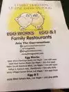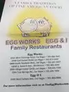 This establishment was recommended by our car dealership, so since we had plenty of time to spare we thought...why not?!? We are very happy we decided to try Egg Works and plan to go again. First our wait was about 30-45 mins long, but was worth every minute. The inside is a good size, however, when it’s packed you can feel it since everyone is taking in air. Ordering was easy, and the egg stand to let the waiters know when you need help is a great idea. You simply flip the egg to a sad face when help is needed and they come right away. Saves them time from having to ask if anything is needed, and allows the customers to enjoy and not be disturbed. While flipping through the menu we quickly saw they serve more than eggs. Even offer meals without eggs. We were in the mood for breakfast and it was more than a serving of breakfast. You get what you pay for and they do not skimp on the servings.