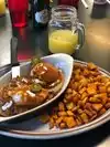 You will definitely get full here! Food was really good and portions were huge. Great, friendly service! I had Huevos rancheros with pork and hubby had chicken fried steak. We both left some at the table. The banana nut muffin was delicious!