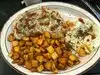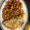 Good biscuits. Not dry. Soft and fluffy so it has good combination with the gravy. The home fries have great seasoning. Mix it up with over medium eggs and it tastes great (even with ketchup). I also had ham. Its a typical ham steak, but nothing bad about it.
