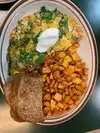 I’m not really a big egg person but this place was packed on a Tuesday morning so we had to try it, wow!!! It was egg-cellent. We both had leftovers. Great banana muffins.