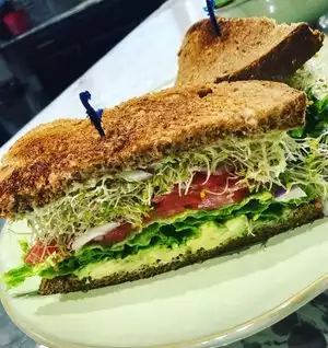 Veggie sandwich was delicious You can believe it’s all plant based And the ocean view is amazing !!!!