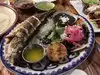 Table of 6 - We started with tuna tartare and some shrimp and lobster queso fundido. We moved on the an array of varied main courses. I enjoyed the whole fish which was a branzino, a couple had the chicken enchiladas, chili relleno, tacos, and steak. All looked and tasted yummy. Most of the dishes were served with a white rice and one or two came with black beans, not the typical Tex-mex service, their menu was a fresh take on classic Mexican.