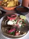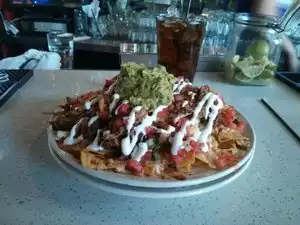 While looking for a restaurant for lunch close to the market, we discover this place. It has a nice bar-like atmosphere, a bit "rough hewn" but in keeping with the locale. Our group of five had a little trouble interpreting the menu but ended up with selections of nachos, burrito, tacos, chips/guacamole/salsa.... The portions are very large, especially the nacho & burrito....I think I liked the guacamole and chips best of everything...... A nice change of pace from chain restaurants!
